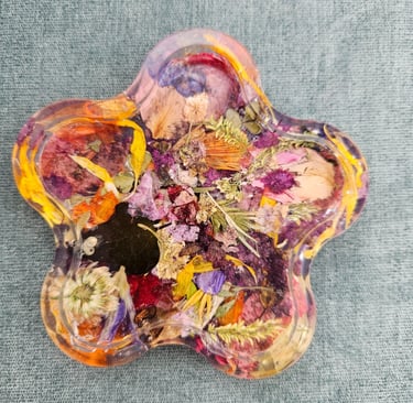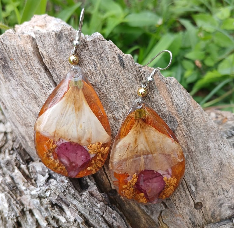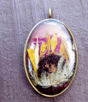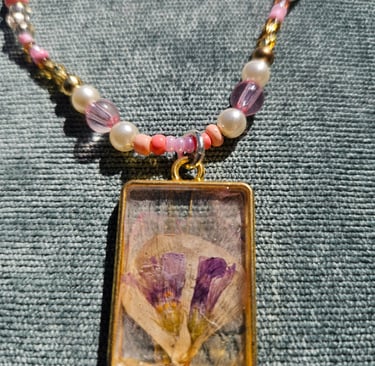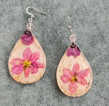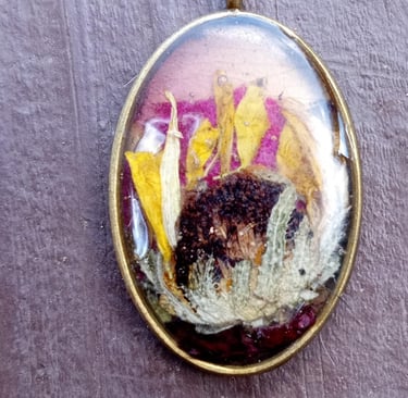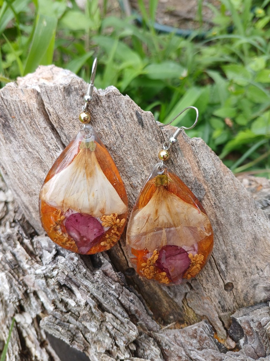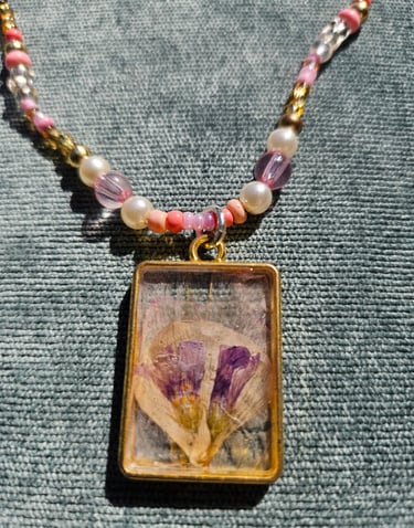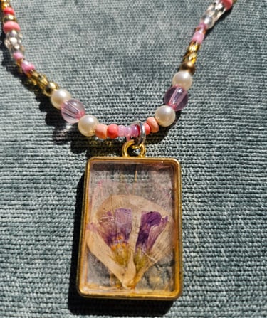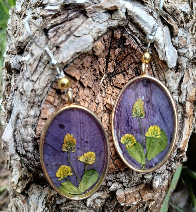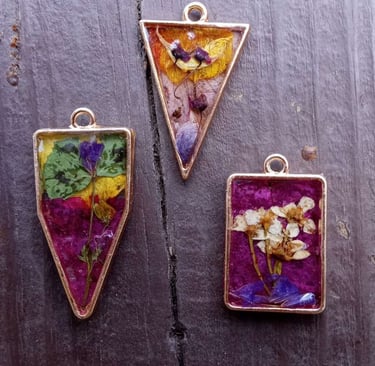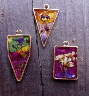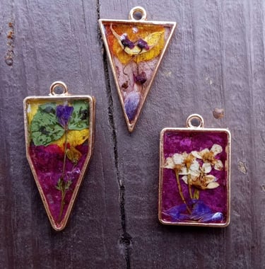 One-of-a-kind pressed flower jewelry made with foraged flowers & sustainable materials